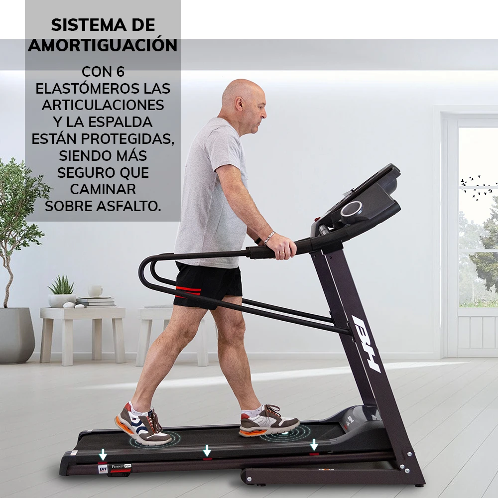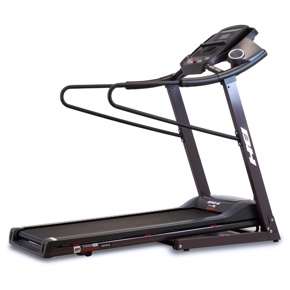 La Pioneer Senior es una cinta de correr especialmente diseñada para un público senior que quiera caminar en casa de forma segura y cómoda. Con las barandillas de seguridad y su acceso fácil, incluso aquellas personas que tengan algún problema de movilidad podrán ejercitarse de forma regular en su hogar.