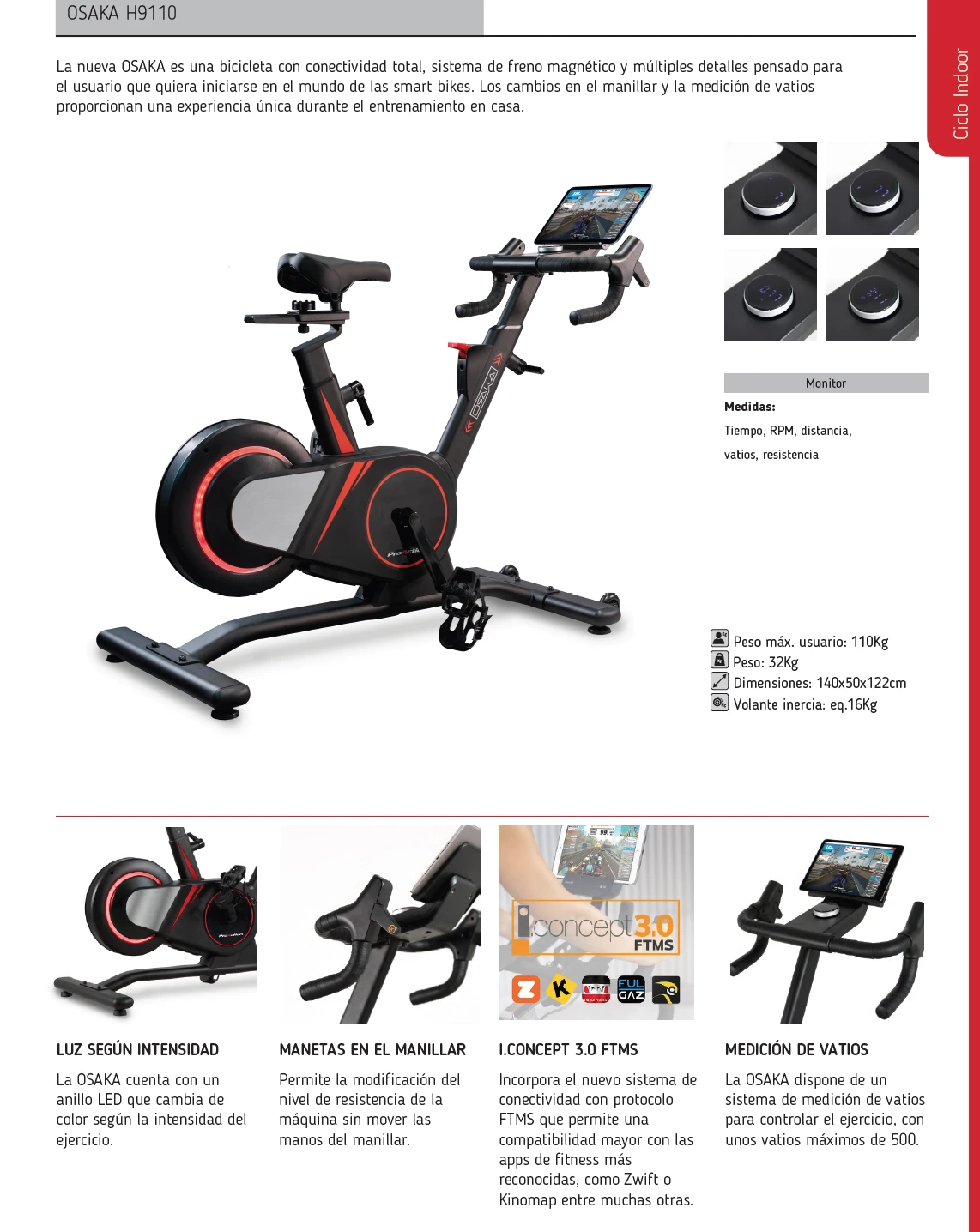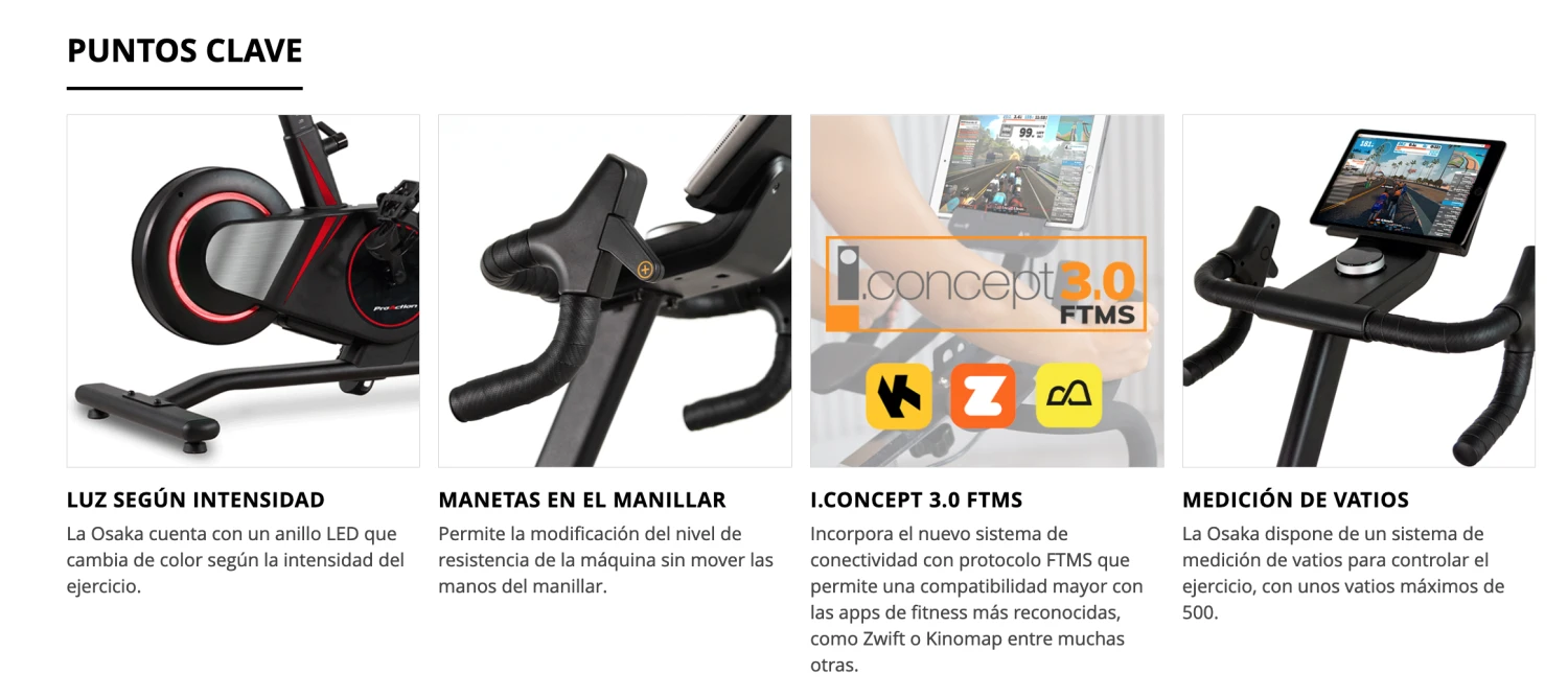 La nueva OSAKA es una bicicleta con conectividad total, sistema de freno magnético y múltiples detalles pensado para el usuario que quiera iniciarse en el mundo de las Smart Bikes. Los cambios en el manillar y la medición de vatios proporcionan una experiencia única durante el entrenamiento en casa.