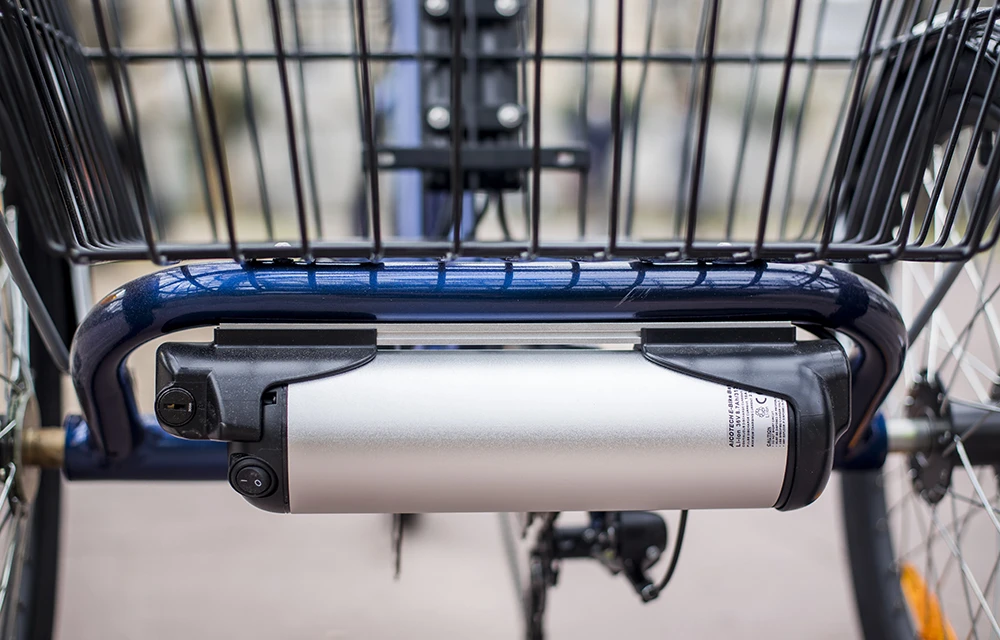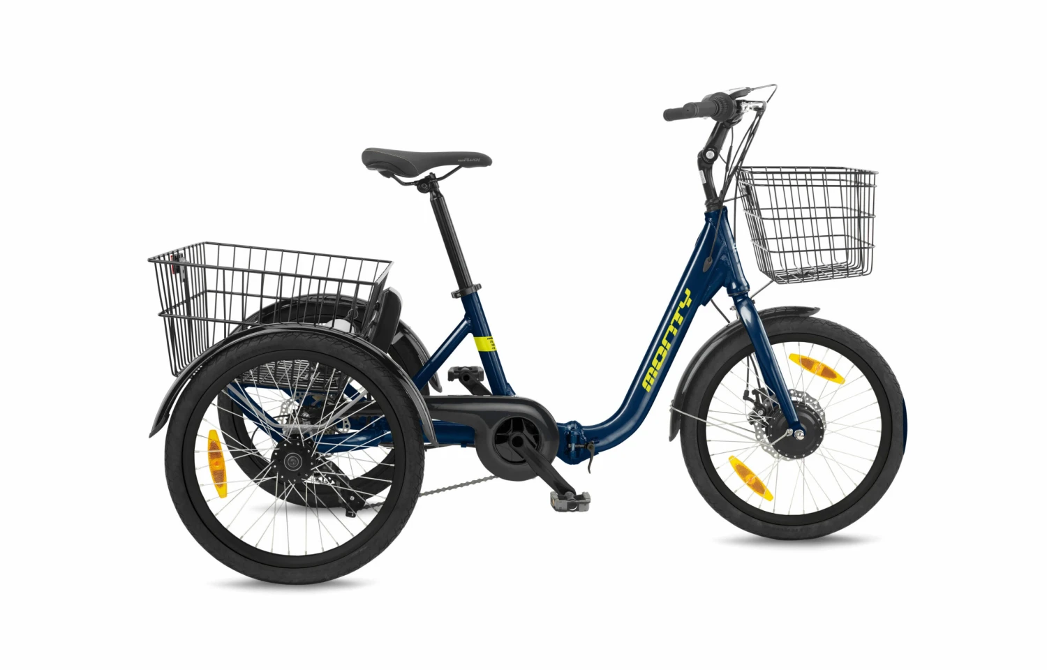 Tricilo eléctrico Monty, plegable y de aluminio, con batería de litio Panasonic de 8,9 Ah y 321 Wh, con una autonomía de hasta 40 km.